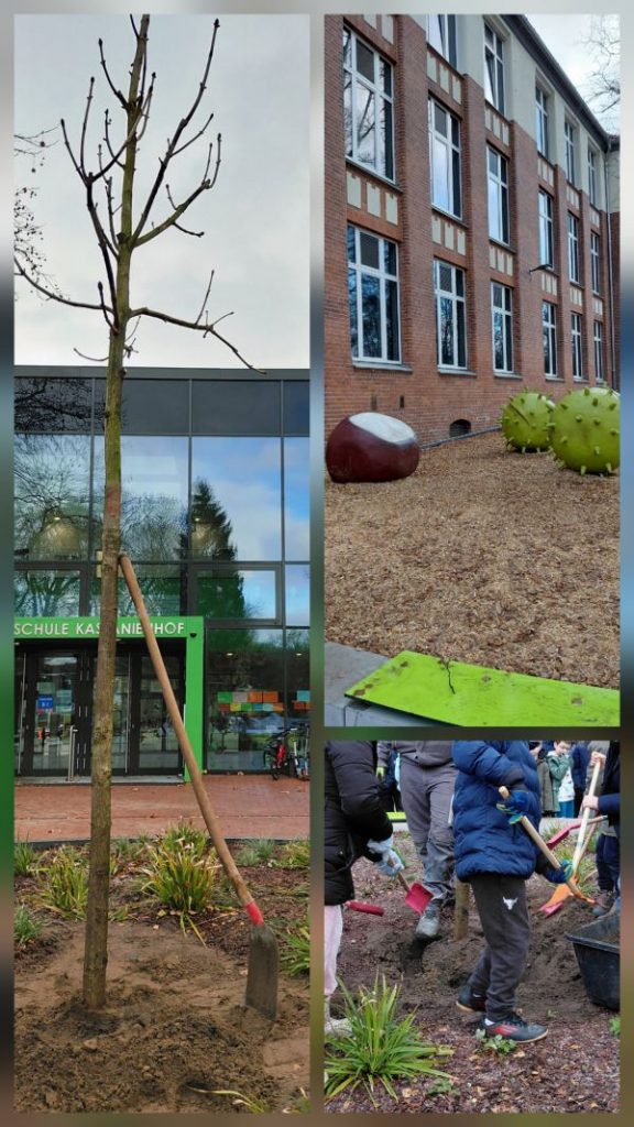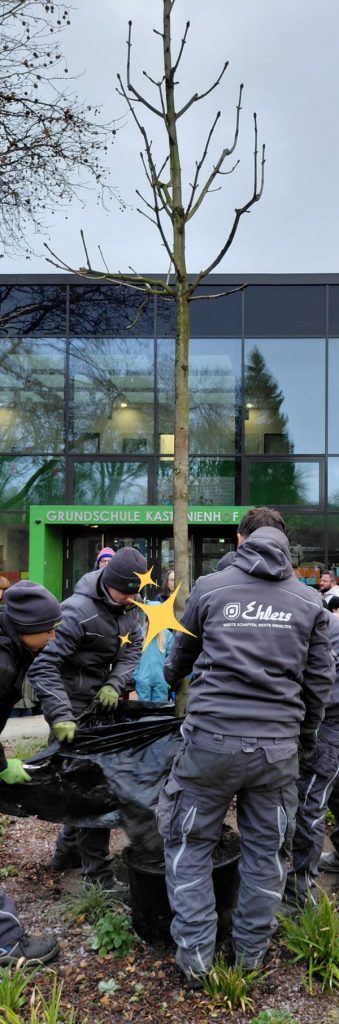 Heute war es endlich so weit – Firma Ehlers pflanzte gemeinsam mit den Kindern und Mitarbeitenden der Grundschule Kastanienhof eine weitere Kastanie direkt vor unserem neu gestalteten Haupteingang. Wir sind sehr stolz und freuen uns, den Baum wie auch unsere Schule weiter wachsen zu sehen.