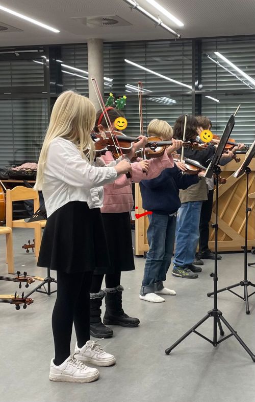 Am Dienstag, den 16.12.25 fand in Kooperation mit der Musikschule bei uns das Winterkonzert mit dem Chor und dem Streichorchester der Grundschule Kastanienhof statt.