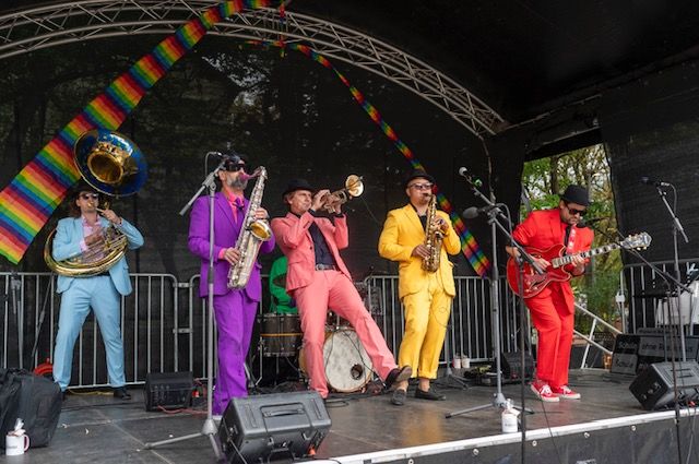 Wir sind sehr glücklich darüber, dass wir dafür eine ganz besondere Band gewinnen konnten: die einzigartige Italo-World-Groove Brass Band Brazzo Brazzone! Wir haben die Musiker gefragt, ob sie die Patenschaft übernehmen würden und sie haben sofort ohne zu zögern „ja“ gesagt! Sie kommen tatsächlich aus Linden, sind aber weit über die Stadtgrenzen Hannovers hinaus für ihre ansteckende gute Laune und ihre supertanzbaren Grooves bekannt. Die Bandmitglieder sind selbst so bunt und vielfältig wie ihre knallbunten Anzüge, die ihr Markenzeichen sind. Sie kommen aus verschiedenen Ländern und haben unterschiedliche Geschichten, doch sie haben eine gemeinsame Leidenschaft: ihre Musik!