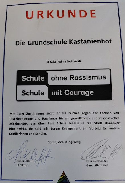 Wir freuen uns, dass wir jetzt Teil des tollen bundesweiten Netzwerks “Schule ohne Rassismus – Schule mit Courage” sind! Aber was bedeutet das eigentlich für uns alle an der Grundschule Kastanienhof?