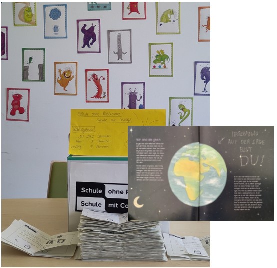 Am 26. Mai 2025 war es dann so weit – die Auswertung der Wahlergebnisse an der Grundschule Kastanienhof. Eine überwältigende Mehrheit aller IN Schule beteiligten Personen (Schüler:innen, Lehrkräfte, Mitarbeitende aus Schulverwaltung und Sozialarbeit, Mensa, Reinigungskräfte und einige mehr) von 96,8 % stimmten für die Selbstverpflichtung gegen Diskriminierung und Rassismus einzustehen.