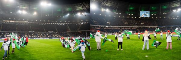 Hinter den Kulissen trafen beide Klassen das Maskottchen Eddi, sangen gemeinsam und sammelten unvergessliche Eindrücke. Anschließend verfolgten die Kinder zusammen mit ihren Eltern und Lehrer*innen das Spiel im Stadion – auch wenn es am Ende leider 0:0 ausging.